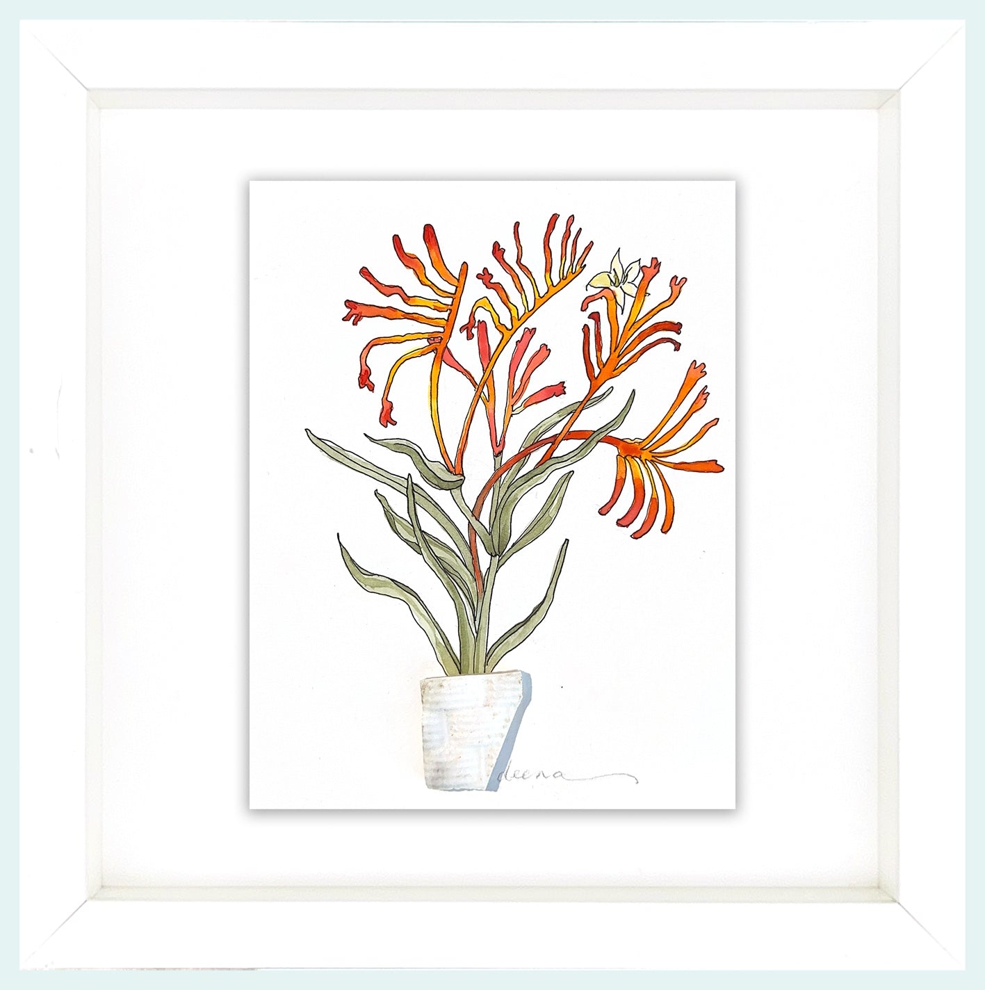 Artwork is in a deep-set square white frame with white mat (270mm x 270mm x 60mm)